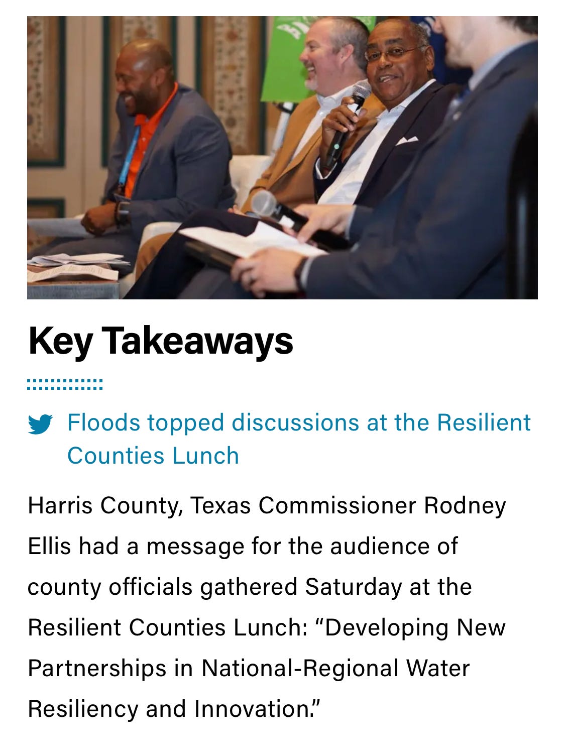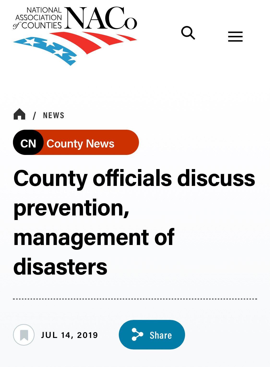 Sonoma County, CA Supervisor James Gore & Harris County, TX Commissioner Rodney Ellis serve together on the National Association of Counties (NaCo). https://www.naco.org/articles/county-officials-discuss-prevention-management-disasters