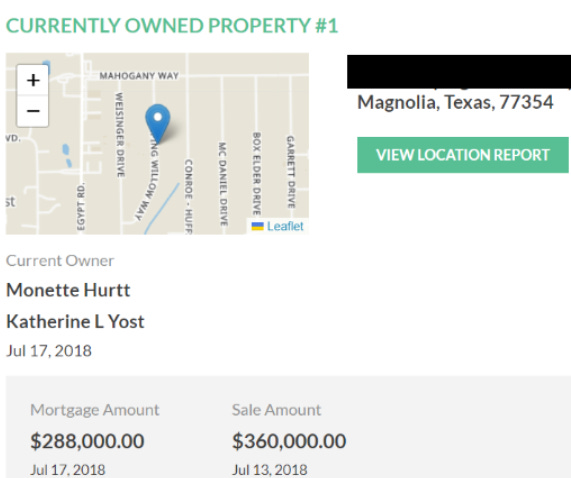From 2018-present, Ms. Yost has shared a home mortgage with her partner, Ms. Monette Hurtt, the Director of Administrative Services for the Harris County Sheriff's Office.