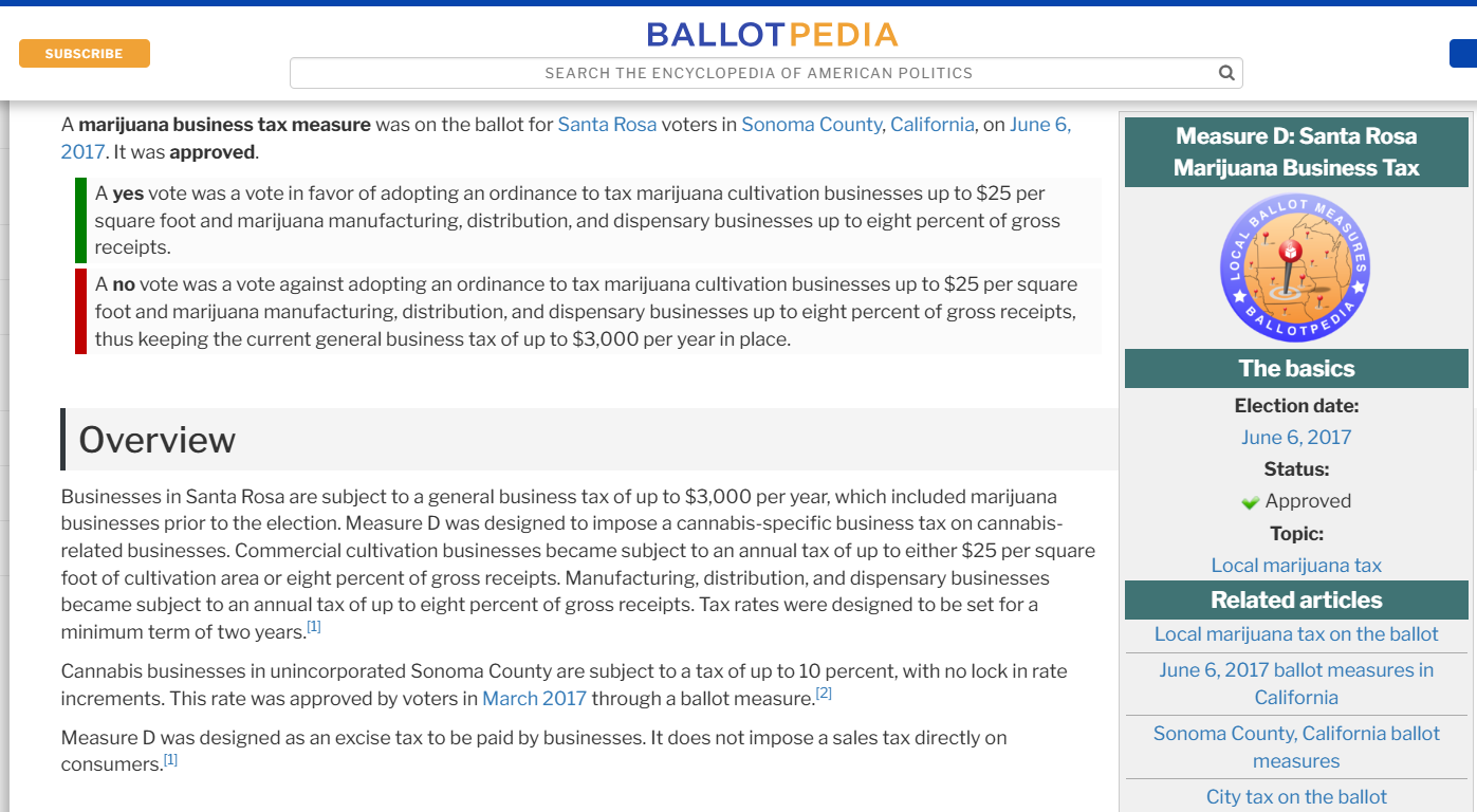 Measure D, a marijuana business tax measure was on the ballot for Santa Rosa voters in Sonoma County, California, on June 6, 2017. It was approved.