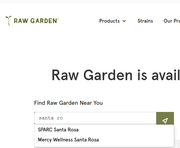 Per the Raw Garden website, the only two Santa Rosa dispensaries which appear to carry their line of products are SPARC and Mercy Wellness.