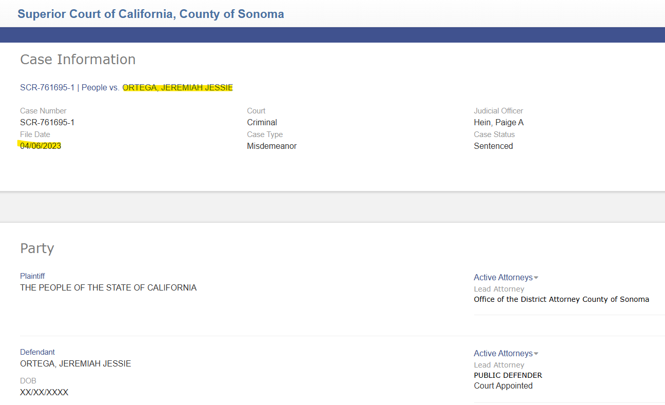 Dispatch logs show that a suspect was contacted at the Perez Residence on 3/31/2023. Mr. Jeremiah Ortega, alleged dog rapist was sentenced with a misdemeanor within the same week.