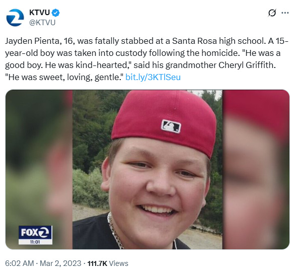 Earlier this week in juvenile criminal court, a judge ruled that Pienta was the aggressor of the fight, “orchestrated” the art classroom attack, and the freshman who stabbed him was “not responsible” for manslaughter. Judge Ken Gnoss also took issue with Pienta entering “the sanctity of a school classroom where (the freshman) was told he would be safe,” the Press Democrat reported.