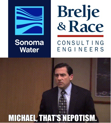 Sonoma County Water Agency’s Assistant GM was married to the Principal of Brelje & Race, the engineering firm selected amongst dozens of competitors to design the river diversion structure