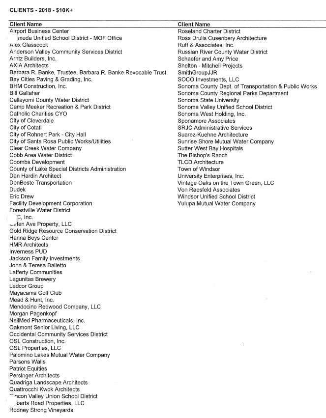 It is not clear as to why the client list was altered drastically on Ms. Jeane’s annual SEI. The 2018 SEI included a multitude of builders, vineyards and private companies omitted for the following years.