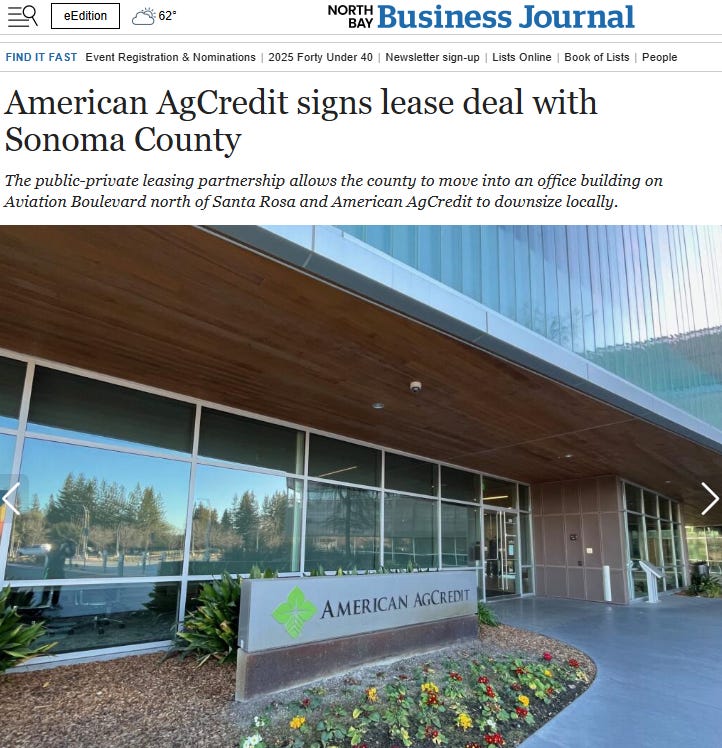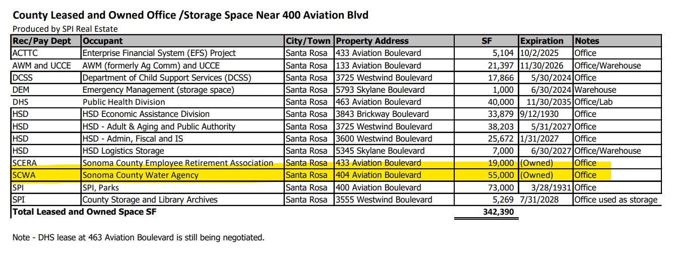 In 2024, the Board approved further analysis of leasing with an option to purchase 400 Aviation Blvd and buy two office buildings at Brickway Boulevard as well, both in the Airport Business Center northwest of Santa Rosa. The County began leasing 400 Aviation in the fall of 2024, when 250 employees from Public Infrastructure and Regional Parks moved into the building. Financial modeling confirmed that acquiring the Brickway Campus for $32 million, and 400 Aviation for $56 million, plus $25 million in building improvements, if added to the cost of constructing a smaller campus on the current site for $320 million would total $434 million – the least expensive option. This represents a savings of $249 to $288 million versus only constructing a new County Government Center to accommodate the same number of employees. In December 2024, the County hired ZGF Architects in collaboration with COAR Design Group as the Architect/Engineer for the County Government Center, and the team has begun designing the new center.