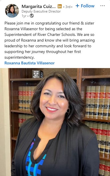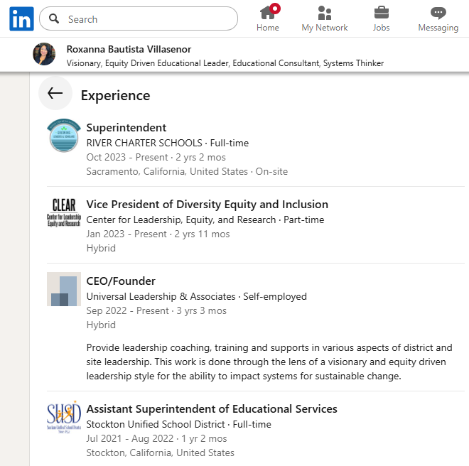 Since Oct. 2023, Ms. Villasenor appears to be the current Superintendent of River Charter Schools in Sacramento according to her LinkedIn.