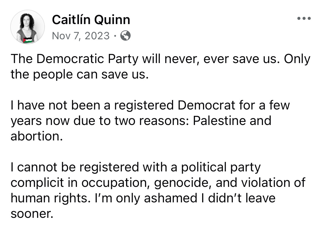 Petaluma Schools Trustee Caitlin Quinn publicly denounced the Democratic Party for their failure to help free Palestine