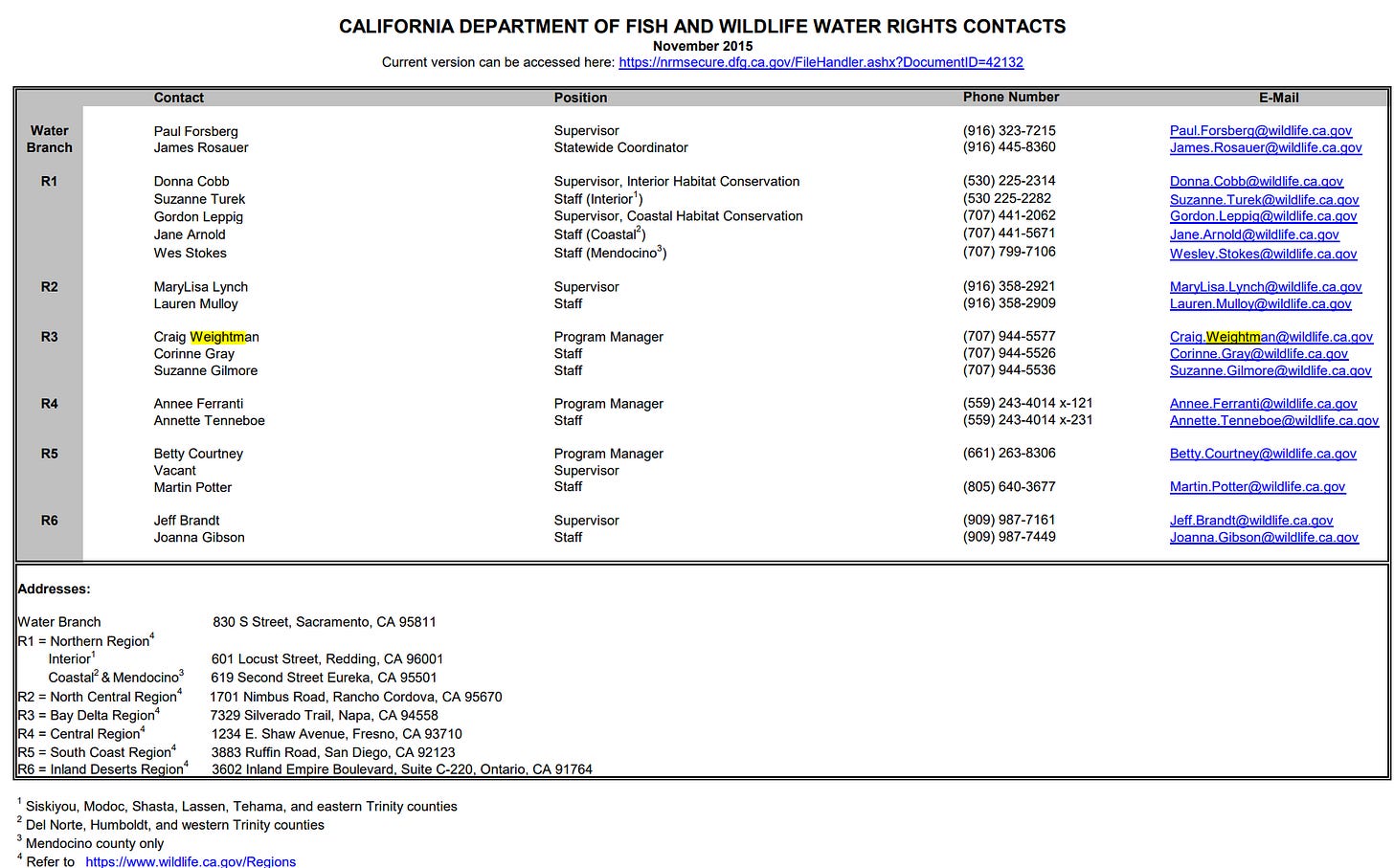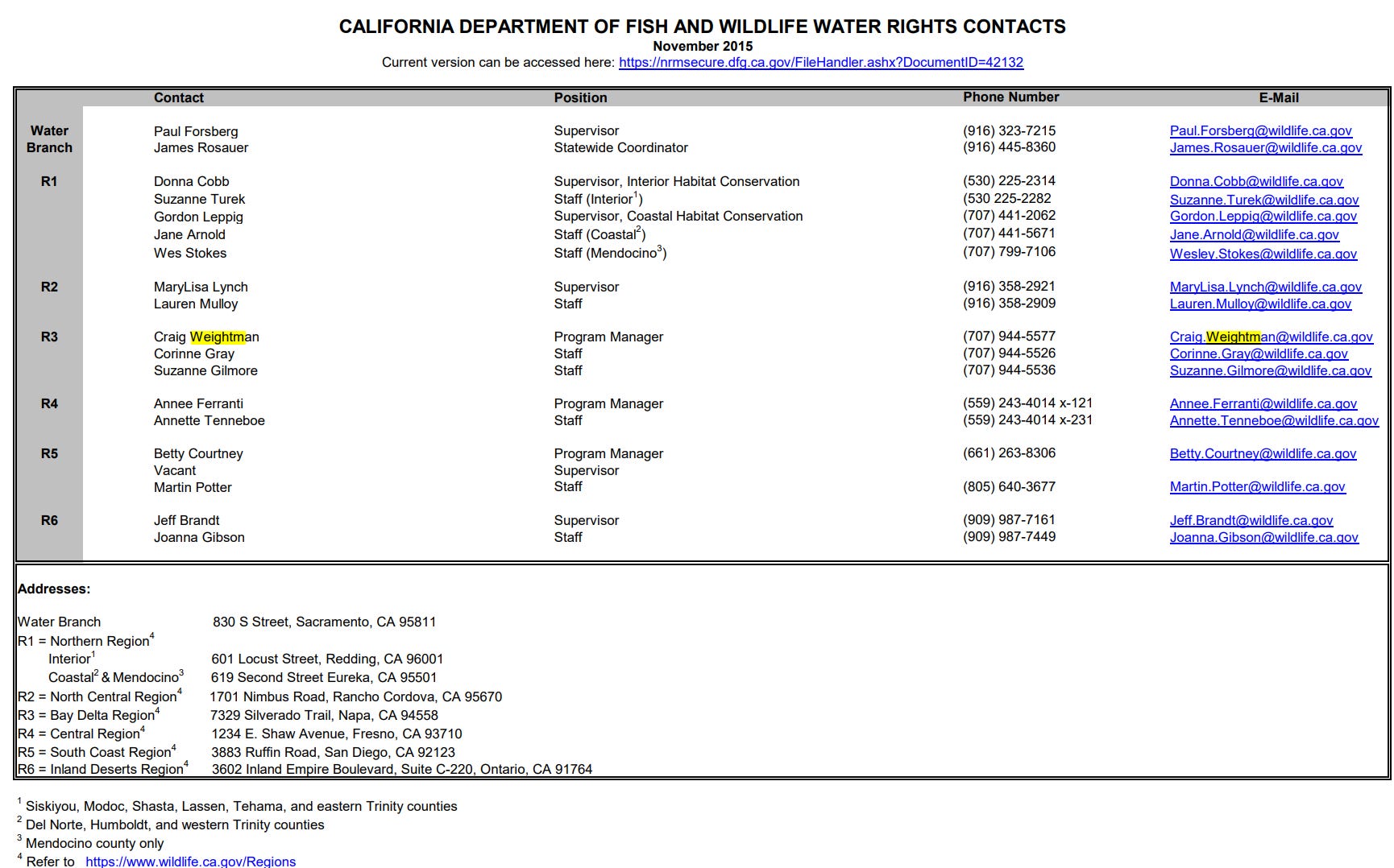 In 2017, he served as the Acting Regional Manager for the California Department of Fish Wildlife’s Bay Delta Region. The Region includes: Alameda, Contra Costa, Marin, Napa, Sacramento (west of I-5), San Mateo, Santa Clara, Santa Cruz, San Francisco, San Joaquin (west of I-5), Solano, Sonoma, and Yolo (south of I-80) counties.