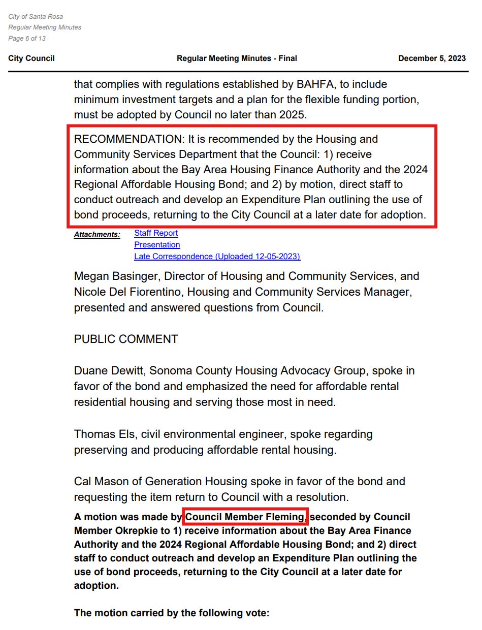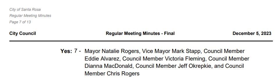 On December 5, 2023, Santa Rosa City Council received the following staff recommendation: