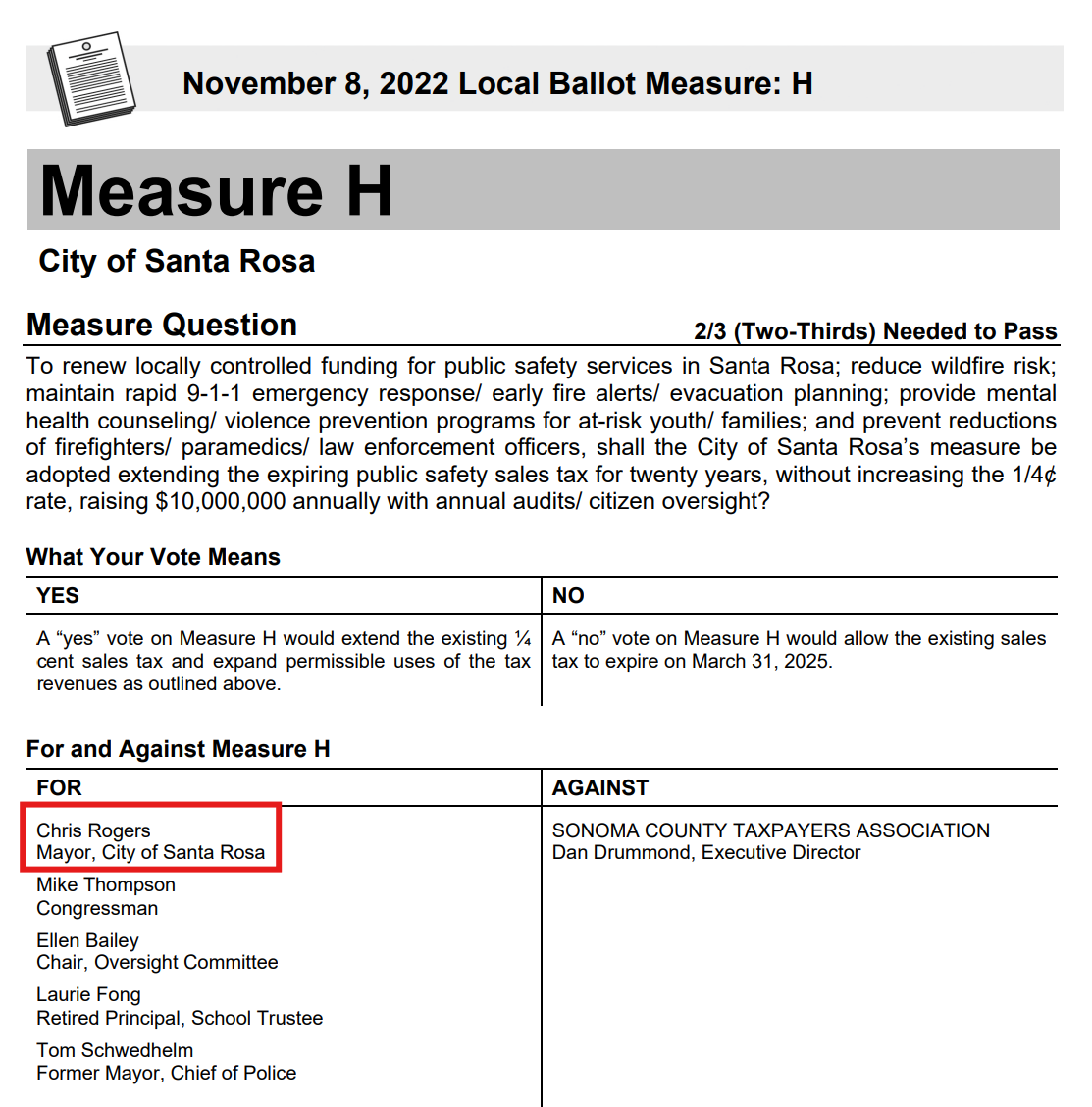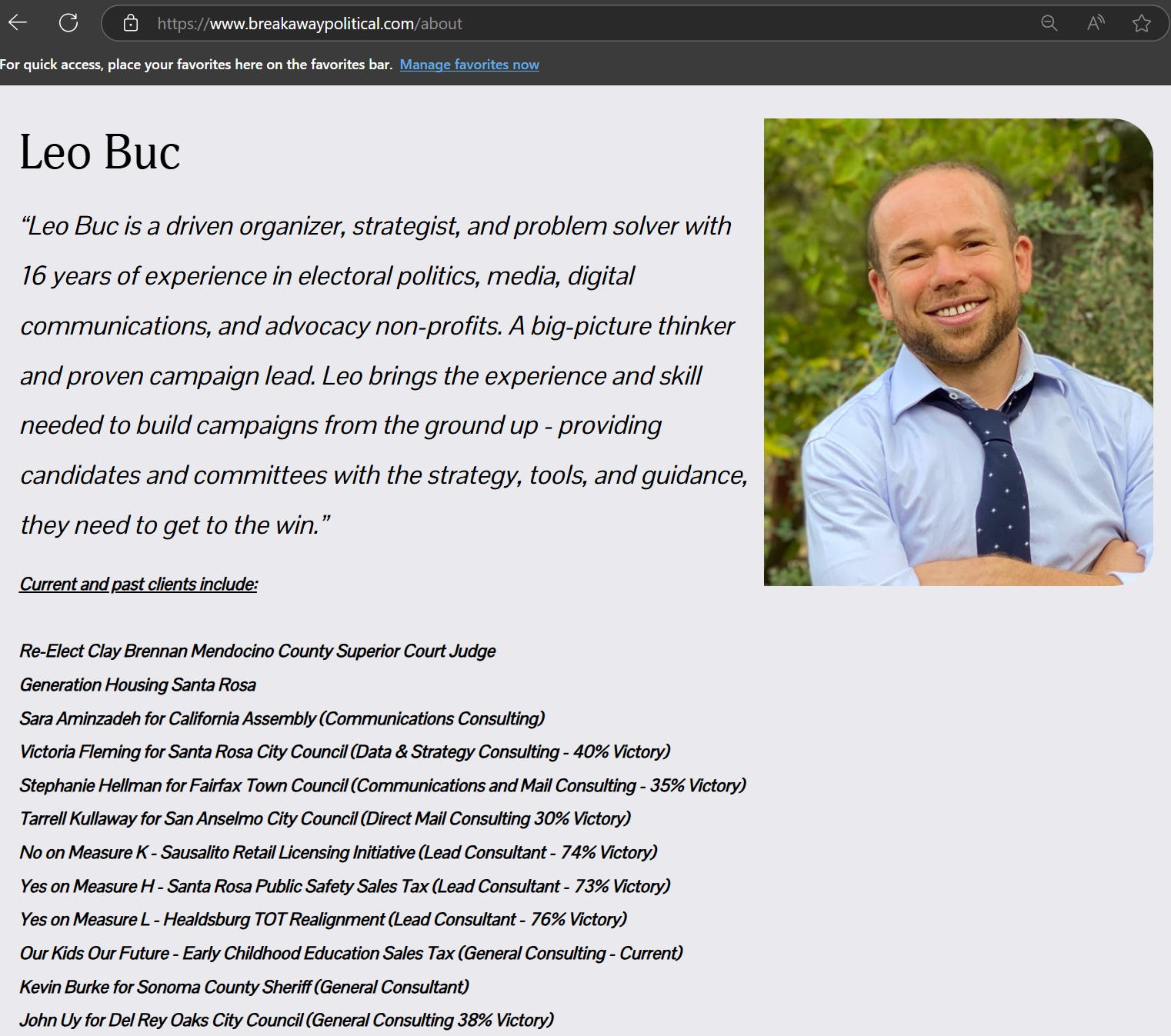 In 2022, Mr. Buc’s firm was paid to advocate for the City of Santa Rosa’s Measure H: